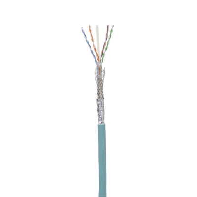 Bobina de Cable Blindado SF/UTP Categoría 6A, Uso Industrial con Resistencia al Aceite y Rayos UV, Multifilar 24/7 (Flexible), Color Azul Cerceta, Bobina de 305m
