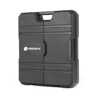Viene en un resistente maletín plástico para fácil transporte y almacenaje. Los manerales cuentan con un botón de rápida liberación de dados.