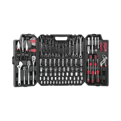 Este juego de herramientas mecánicas es una selección versatil con 3 manerales, una excelente variedad de dados, extensiones, llaves combinadas, llave ajustable, llaves hexagonales, pinzas uso eléctrico y más.