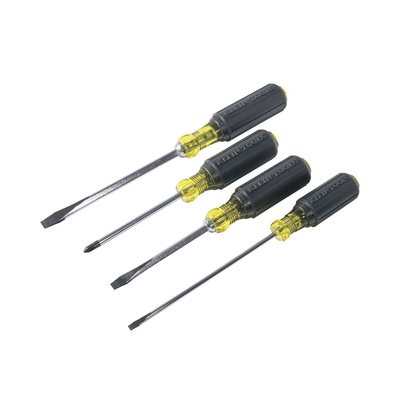 - Juego de desarmadores que incluye desarmadores de punta Phillips, dos de punta plana y uno de punta cabinet.