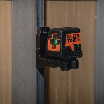 - El nivel láser verde autonivelante tiene una línea verde brillante horizontal y vertical fácil de leer con un rango de trabajo de hasta 50' (15,2 m)