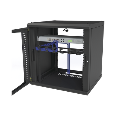 Gabinete para Montaje en Pared, Puerta de Cristal Templado, Cuerpo Fijo con Rack 19″ de 12 Unidades